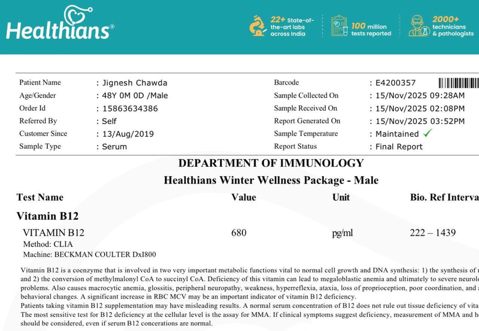 ज़्यादातर लोगों को नियमित उपयोग के बाद B12 इंजेक्शन की ज़रूरत नहीं रहती, क्योंकि यह लंबे समय तक प्राकृतिक रूप से B12 का स्तर संतुलित रखता है।